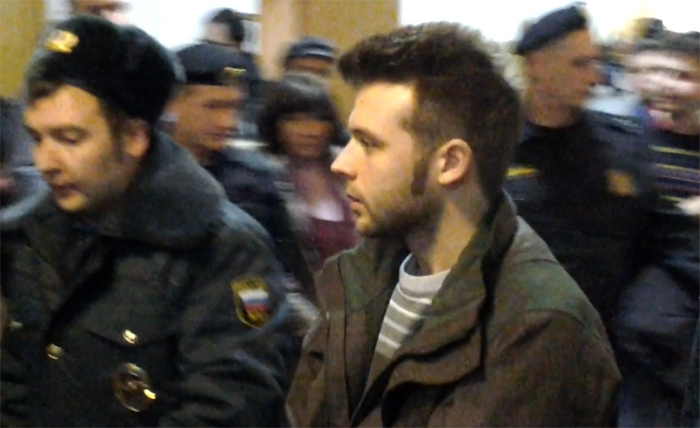 24-летний Гущин, член Национал-демократической партии, обвиняется по части 2 статьи 212 (участие в массовых беспорядках) и части 1 статьи 318 УК (применение насилия в отношении представителя власти). Решением Басманного суда он арестован до 6 апреля.