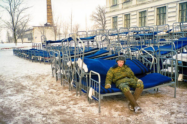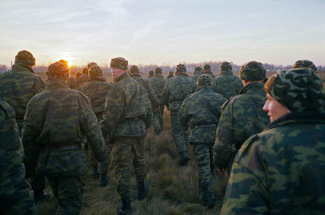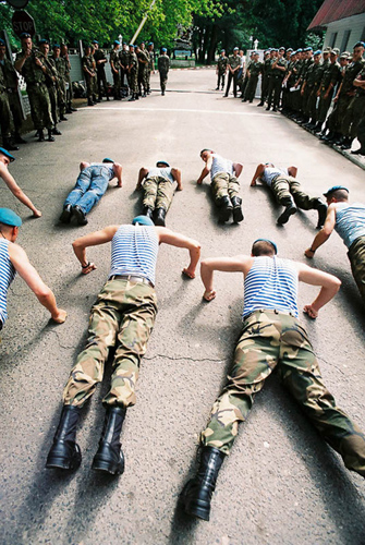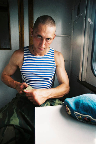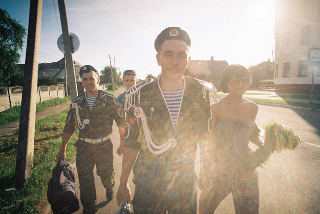 В 2010 году попросился в армию, обязательно в лучшие войска. Мечтал, что буду снимать быт ежедневный, описывать жанром эпистолярным солдатские будни, кино даже снять хотел. «Купцы», выбиравшие новобранцев, косо смотрели на двадцатипятилетнего сумасшедшего и усиленно отговаривали. Плохое зрение не помеха. На комиссию в линзах — и вот я еду с лысой головой в военную часть. Как всегда, реальность оказалась не такой, какой мы ее представляем. 3 прыжка с парашютом, 2 раза в лес на 10 дней, многокилометровые марш-броски, морально устаревшие люди и техника. В армии нельзя было ничего иметь своего, даже личности, не говоря про профессиональную цифрозеркалку. Выход был найден — пленочная говномыльница, Olympus MJU-2. Но даже ее приходилось прятать от офицеров, иногда в трусах. Статус сумасшедшего после этого только укрепился. Результат — цикл призыв — проводы — присяга — служба — дембель.