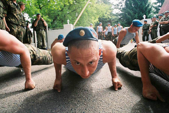 © Александр Михалкович Отжавшись, солдаты ждут всех отстающих, не касаясь грудью земли.