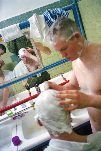 © Александр Михалкович Вот такой вот прием в душе в современных войсках — на улице -25, изо всех оконных щелей старой казармы дуют сквозняки. А горячей воды нет. Может быть, закалка по системе давно почившего Порфирия Иванова?