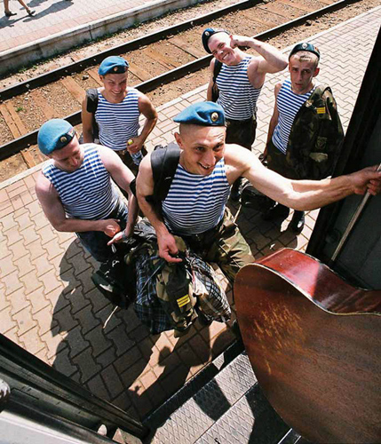 © Александр Михалкович Посадка в поезд домой. Все атрибуты дембелей — гитара, шампанское в сумках и отличное настроение.