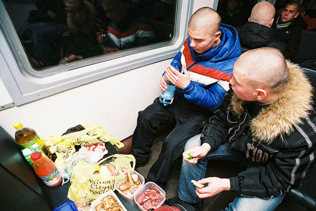 © Александр Михалкович Будущие солдаты едут в электричке из призывного пункта в воинскую часть. За шестичасовой путь им так и не удастся съесть всю еду, которую заботливые родственники дали им в дорогу.