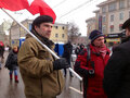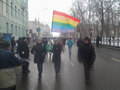 Как сообщает корреспондент "Граней", в шествии приняли участие националисты, они скандировали гомофобные кричалки. Несколько участников марша несли радужные флаги - символ равноправия ЛГБТ. Одна из девушек с таким флагом попыталась пройти в головную часть колонны. Левые активисты из "службы безопасности марша" жестко ее скрутили и попытались отобрать флаг, завязалась потасовка. Затем ей все-таки удалось развернуть флаг в середине колонны.