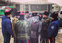 К Сахаровскому центру прибыла группа агрессивно настроенных казаков. По последним данным, они прорываются в здание, находящиеся в Сахаровском центре не могут его покинуть. Как пишет Калужский, один из участников спектакля журналист Максим Шевченко "увещевает казаков: тут не происходит антиправославной акции". По свидетельству корреспондента PublicPost, перед этим казаки обсуждали между собой возможность "штурмануть" здание.