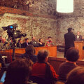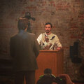 К Сахаровскому центру приехал глава Ассоциации православных экспертов Кирилл Фролов. Перед этим у входа в центр стоял "православный активист" Дмитрий Цорионов (Энтео) с баллончиком краски и черным флагом, сообщал Калужский. Энтео заявлен как один из участников спектакля. В прошлом году он с группой активистов пытался сорвать спектакль о Pussy Riot в Театре.Doc.