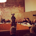 Сотрудники Федеральной миграционной службы прервали свидетельский спектакль "Московские процессы" в Сахаровском центре. Как сообщает в Фейсбуке участник спектакля журналист Михаил Калужский, четверо силовиков зашли в зал и потребовали документы у швейцарского режиссера Мило Рау. Они предъявили постановление о внеплановой проверке на предмет незаконной трудовой деятельности. Сотрудники ФМС заявили о намерении проверить документы у всех иностранцев, находящихся в Сахаровском центре.