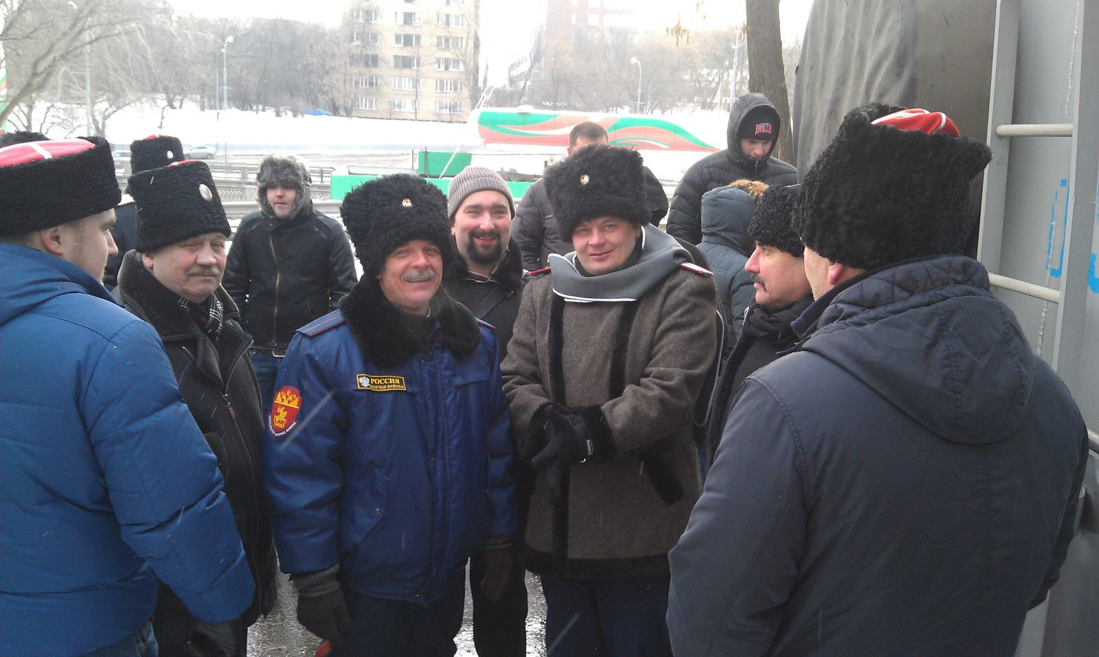 Атаман хутора Бабушкинский Турченко Аркадий Валерьевич рассказал, что казаки просто пришли в музей приобщаться к культуре. Что происходит в Сахаровском центре, по его словам, казаки не знают.