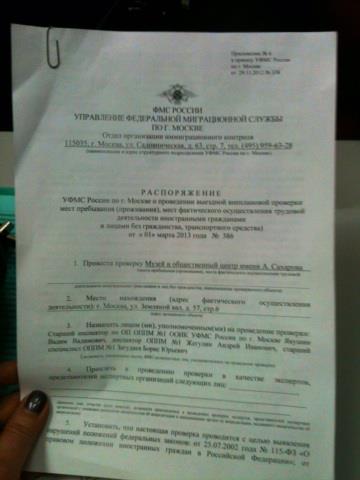 А-а-а! Вышли на связь с директором УФМС Москвы Кирилловой и директором ФМС России Ромодановским — оба ничего не знают о проверке спектакля!