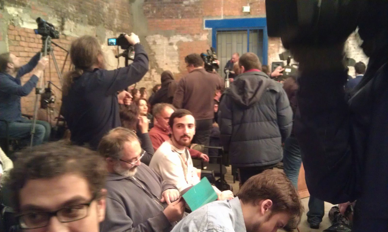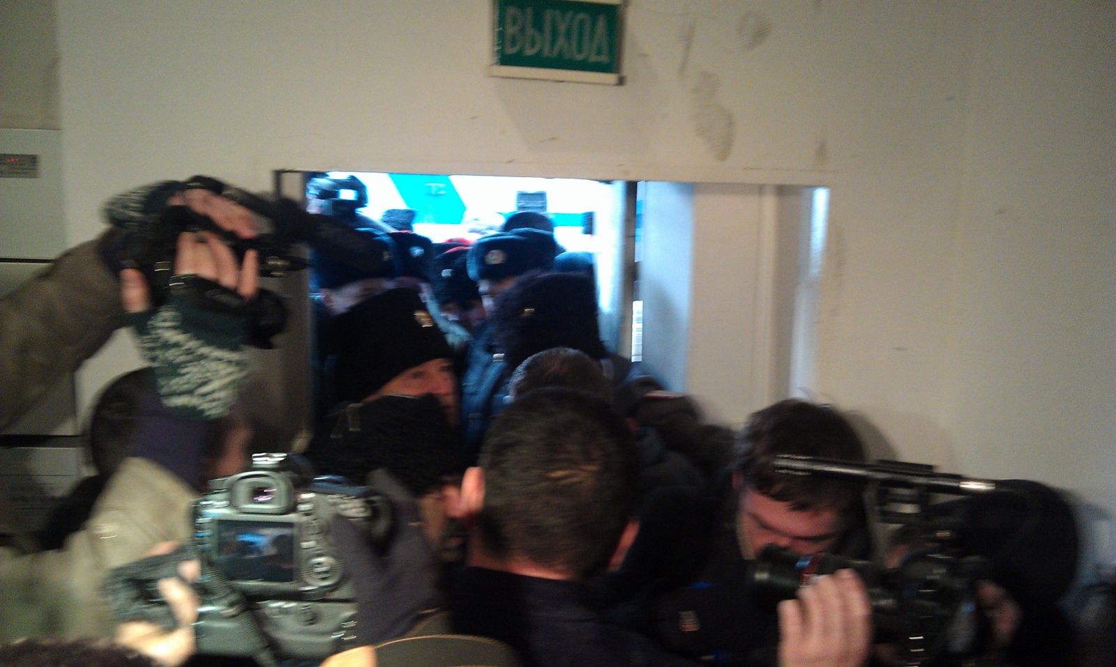 Максим Шевченко (утромбовавший часом ранее приведённых, похоже, Цорионовым, ряженных служителей ФМС) впустил в зал пятерых, остальных предотвратил зычным голосом и торсом.