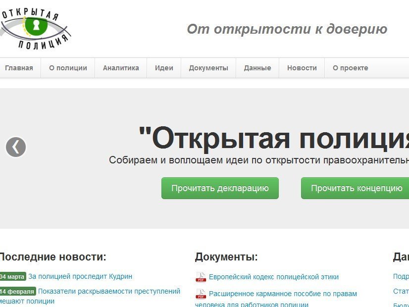Среди первых публикаций портала есть и «Концепция Открытой полиции» - «набор предложений Комитета Гражданских Инициатив по существенному увеличению и повышению качества публичной деятельности правоохранительных органов, предоставлению общественно-значимой информации широкой общественности для укрепления диалога по повышению собственной прозрачности».