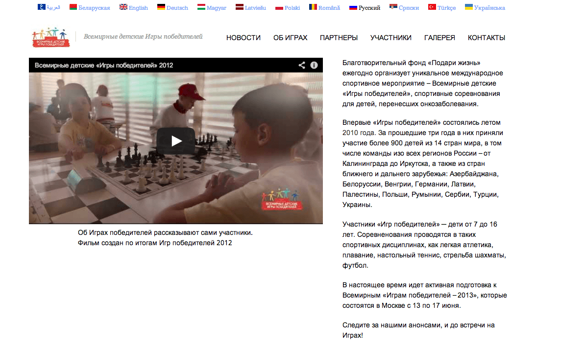 Фонд «Подари жизнь» ищет программиста для сайта «Игры победителей»