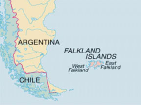 Большинство населения Фолклендов — потомки британских переселенцев. Общая площадь двух крупных и нескольких сотен мелких островов - 12 тысяч 173 квадратных километра. 80% территории занимают пастбища, а овцеводство, наряду с рыболовством, составляет основу экономики местных поселений. Фолкленды имеют для Великобритании стратегическое значение. Здесь расположена британская военно-воздушная база, а также порты и аэродромы, необходимые для снабжения антарктических станций.