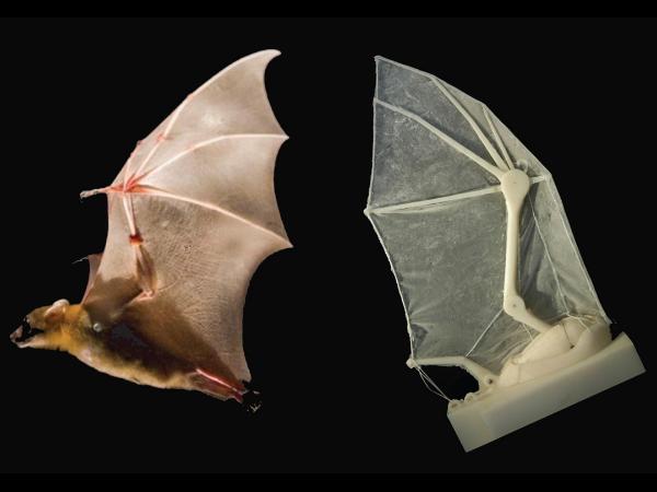 Настоящая летучая мышь и роботизированное крыло, созданное по ее подобию. Фото: Breuer and Swartz labs/Brown University Продолжительные аэродинамические испытания модели во всей красе показали, что миллионы лет эволюции создали по-настоящему сложную систему, повторить которую во всех деталях не так-то просто. У исследователей возникла масса трудностей с суставами, которые не выдерживали нагрузки, и с материалом мембраны, который рвался по краям. Зато в процессе решения этих проблем стала понятна функция отдельных групп мышц и сухожилий на крыльях летучих мышей.