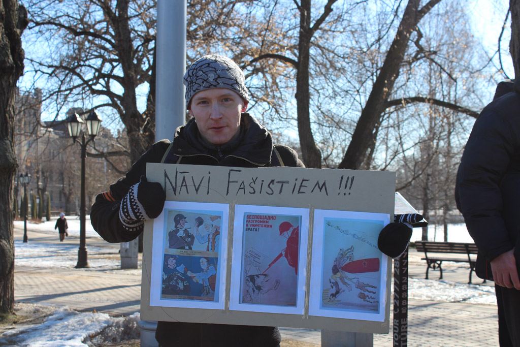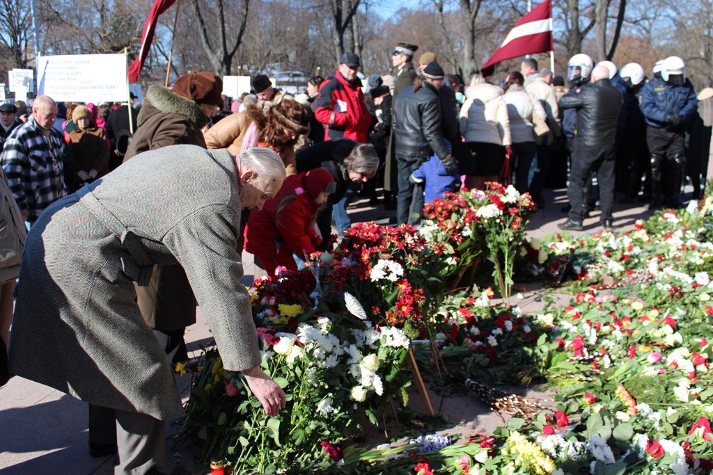 Представители национальных объединений собрались на Домской площади, после чего стройными колоннами с песнями прошествовали к памятнику Свободы, где развернули флаги и возложили цветы. Антифашисты в этом году отказались от пикета и переодевания в форму узников концлагерей. Они установили большие динамики, из которых некоторое время звучал сигнал воздушной тревоги и затем были зачитаны сводки о погибших в концлагерях. В ответ сторонники легионеров обесточили динамики и начали петь патриотические латышские песни.