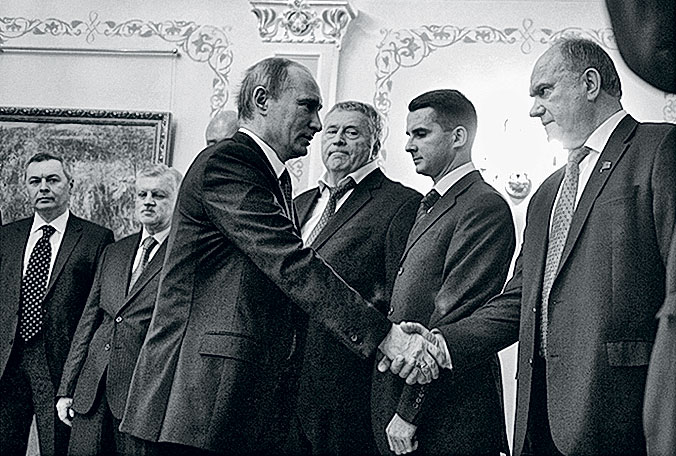 Ну а с возвращением Путина в Кремль на третий срок этот кодекс просто решили довести до совершенства. «Система стала черно-белой: создано корпоративное государство, где все структуры встроены в вертикаль, — поясняет Рыжков. — Ленин когда-то говорил о профсоюзах как о приводных ремнях государства. Так вот, все четыре думские партии окончательно стали такими ремнями, только разного цвета, намотанными на барабан администрации президента. Год назад, когда казалось, что баланс сил может измениться, ремни немного разболтались — так с механизмами бывает. Но Путин 7 мая вернулся, подтянул ремни и восстановил корпоративное государство».