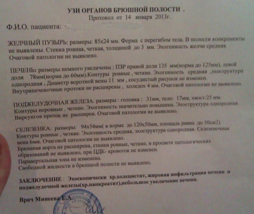Пока сижу читаю "настенные рамки"... Сертификат такой-то выдан такой- то, Диплом такой- то выдан такой- то.. Такая -то растакая- то прошла курс типа "молодого бойца" и "старого бойца"!) - и главное все про врача который узи делать будет и руководителя отделения УЗИ . Впечатляет... ложусь на кушетку, осматривает, ничего страшного (с ее слов ) не находит... и пишет заключение как и положено после осмотра. Написала, я пока одевался взглянул и увидел.........