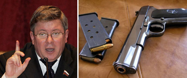 Александр Торшин В июле 2012 года Александр Торшин представил 195-страничный доклад, смысл которого заключался в том, что россиянам необходимо позволить покупать боевые револьверы. В докладе было даже предложение изъять все находящиеся на руках у россиян травматическое оружие, «как оружие безответственного плана». «Тот, кто будет иметь нормальное огнестрельное оружие, будет себя по-другому вести, это оружие дисциплинирует», — заявил сенатор. Понятно, что главным выгодополучателем данной меры оказались бы именно оружейный заводы.