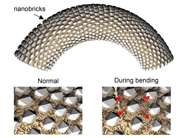 Нанометровый размер «кирпичиков» кальцита и значительное расстояние между ними в структуре искусственной спикулы предотвращают ее разрушение при экстремальном сгибании Новый материал буквально образовывался сам собой из аморфного карбоната кальция и силикатеина, который был также необходим для управления самоорганизацией спикул из кальцита. Далее ему позволяли нарасти на протяжении шести месяцев. По истечении контрольного срока учёные получали кристаллический материал из синтетических спикул. В конечном итоге каждая из них состояла из нанокристаллов кальцита, выстроенных наподобие кирпичной стены, где в роли цемента выступает белок. Размер спикул составлял 10-300 мкм в длину и 5-10 мкм в диаметре.