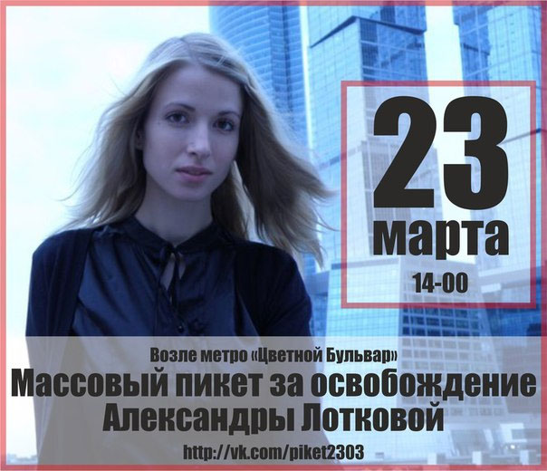 В субботу, 23 марта, в Москве пройдет акция за освобождение студентки Александры Лотковой, которую приговорили к трем годам колонии за то, что она, обороняясь, ранила в метро из травматики двух мужчин.