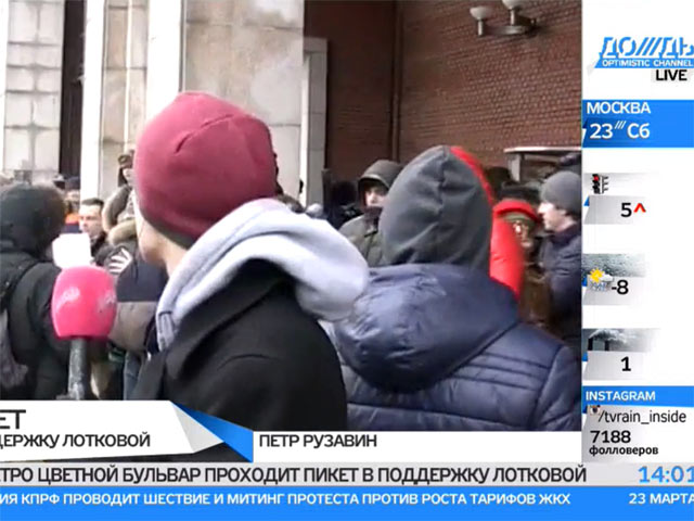 У станции метро собралось несколько десятков человек, это противники приговора Лотковой и представители прессы.