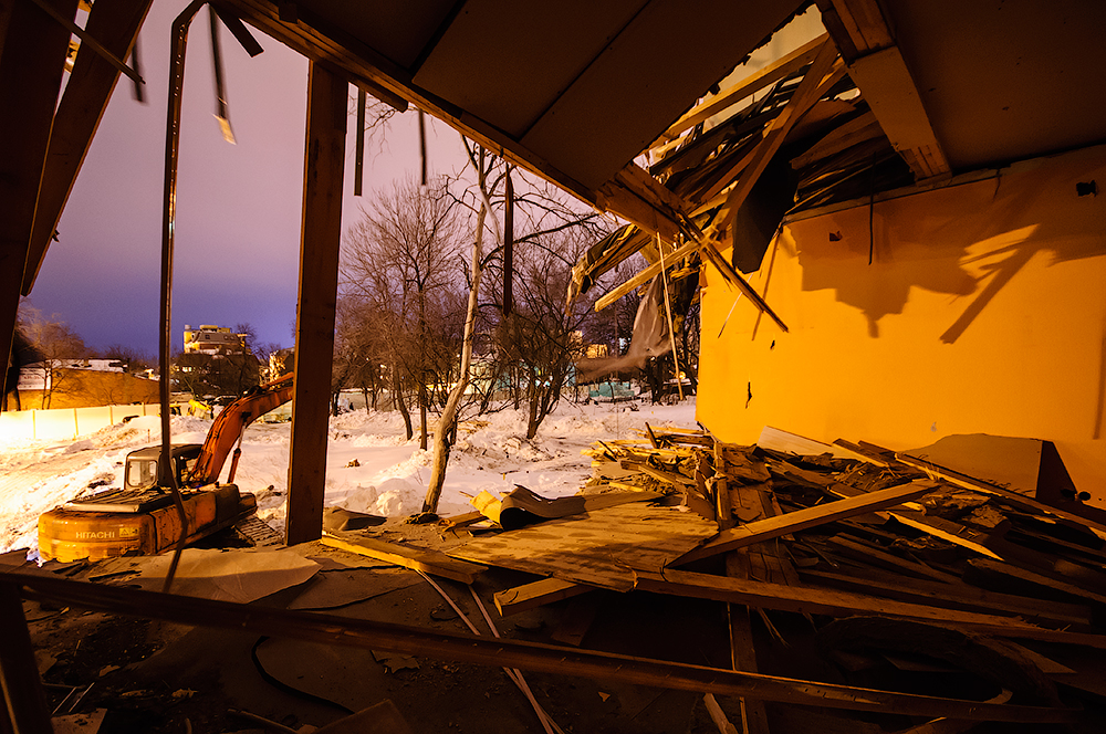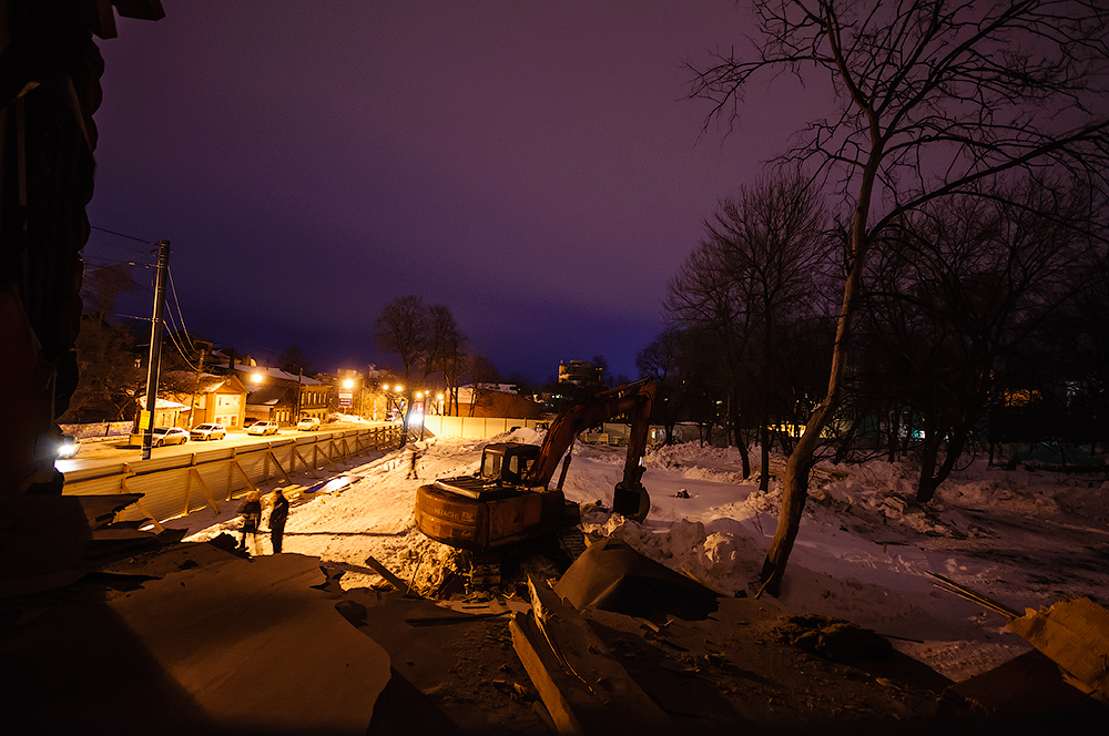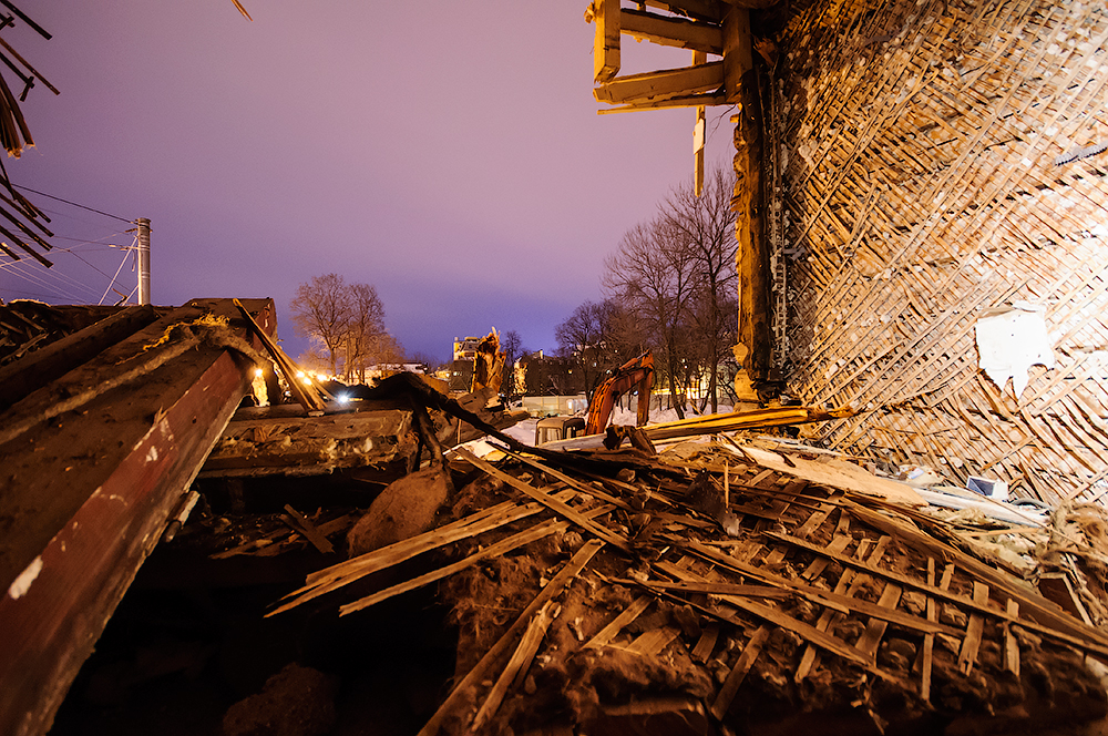 1. Активисты дежурили возле дома вечером 22 марта, охраняли дом и утром на следующий день. Однако после обеда на посту остались лишь две женщины и один активист из "СпасГрада", и рабочие решили воспользоваться этим. Кроме того, основная масса общественности присутстовала на "Часе Земли", что усугубило ситуацию.