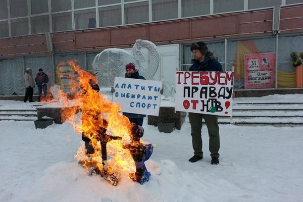 В Апатитах "требующие правды" сожгли чучела журналистов НТВ