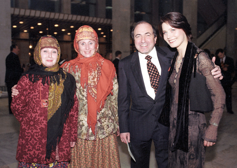 Предприниматель Борис Березовский (второй справа) с супругой (справа) во время премьерного показа фильма Никиты Михалкова "Сибирский цирюльник" в Государственном Кремлевском дворце.