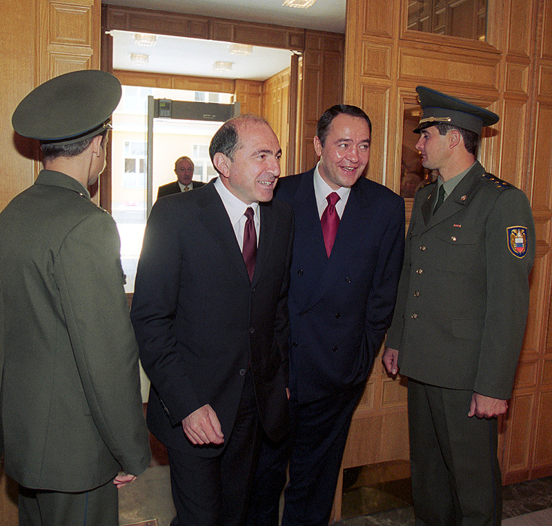 10 июля 2000, Москва. Борис Березовский (второй слева) с министром по делам печати и средствам массовой информации Михаилом Лесиным на входе в Кремль, где Владимир Путин должен был произносить свою первую президенсткую речь.