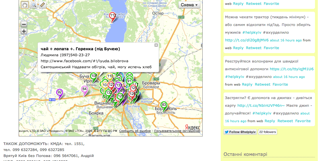 В городе уже запущена и активно пополняется новыми сообщениями краудсорсинговая платформа «Карта помощи Киеву» – общественный антикризисный центр и служба оповещения.