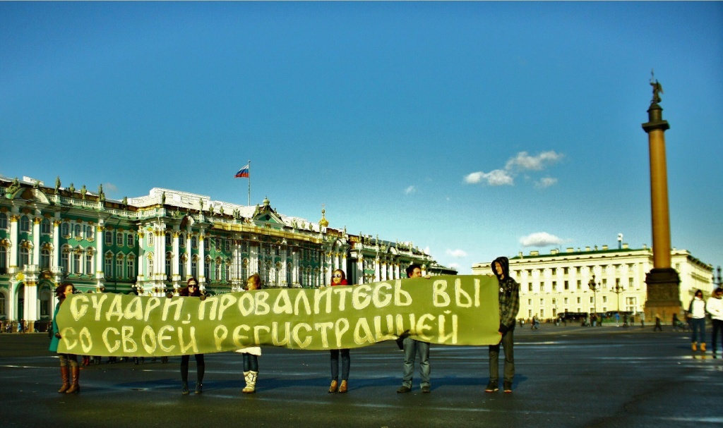 Так называемый «закон о прописке», против которого собирают подписи, Госдума пока приняла только в первом чтении. Возможно, ко второму чтению в него будут внесены поправки. Как бы там ни было, гражданские активисты уже проводят акции против законопроекта. Так, 18 марта прошел несанкционированный пикет на Красной площади: 15 человек развернули растяжку «Идите на х*й со своей регистрацией», жгли фаеры и скандировали: «Где живем – не ваше сучье дело», «Россия будет свободной», «Долой власть чекистов» и др. Все были задержаны полицией, но большинство участников впоследствии отпустили. Под арестом на 8 суток осталась только активистка Вера Лаврешина.