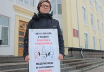 Одиночные пикеты, приуроченные к ежегодной "Неделе против гомофобии", состоялись на Стефаниевской площади в центре столицы Коми. Дарья Чернышева и Вячеслав Слюсарев в течение получаса стояли с плакатами "Свобода шествий не для всех?", "Секс-большинство затыкает нам рот", "Модернизация по-сыктывкарски: гомофобия, цензура, фашизм". На пикетчиков составлены протоколы об административном правонарушении, они собираются обжаловать действия полиции.