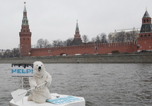 "Гринпис" провел у стен Кремля акцию в защиту Арктики, сообщается на сайте организации. В понедельник утром активист движения, одетый белым медведем, пустился на куске пенопласта в плавание по Москве-реке с лозунгами "Спасите Арктику!" и "Arctic not for sale!" ("Арктика не продается!"). Примерно через полчаса катер МЧС забрал экозащитника. Активист был доставлен в ОВД "Якиманка", откуда его отпустили без составления протокола.