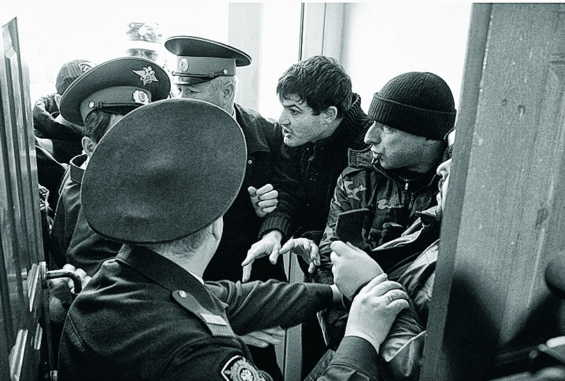 На стекле полицейской машины грудью лежит местная жительница — женщина лет пятидесяти, в пуховике и меховой шапке. «Антихристы, что же вы с Русью-матушкой делаете? — причитает она, обращаясь к молодому полицейскому, который сидит на переднем сиденье, поджав губы. — Да пусть провалятся ваши выборы! Мне в церковь проехать на исповедь надо! Как были рабами бесправными, так и помрем!»