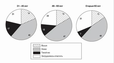 Уровень профессиональной подготовки сегодняшнего студенчества большинство «взрослых» опрошенных (а молодежи такие вопросы, понятно, не задавались) склонны считать более низким, чем во времена их молодости. Причем это мнение преобладает весьма ощутимо и среди полагающих, что нынешним студентам живется тяжелее (50 % при 17 % заявляющих, что сегодняшние студенты подготовлены лучше), и среди говорящих, что им живется легче (58 и 25 % соответственно). А вот полагающие, что студентам живется примерно так же, как и десятилетия назад — не легче, но и не тяжелее, — настроены гораздо менее критично: 21 % из них думают, что сегодняшние студенты подготовлены лучше, 25 % — что хуже (42 % — что примерно так же). Нельзя, конечно, утверждать на этом основании, что за «жалостливыми» и «завистливыми» суждениями респондентов о жизни сегодняшних студентов зачастую стоит некоторое пренебрежение к объектам этих суждений, связанное, в свою очередь, с потребностью в самоутверждении. Но осторожно предположить, наверное, можно.