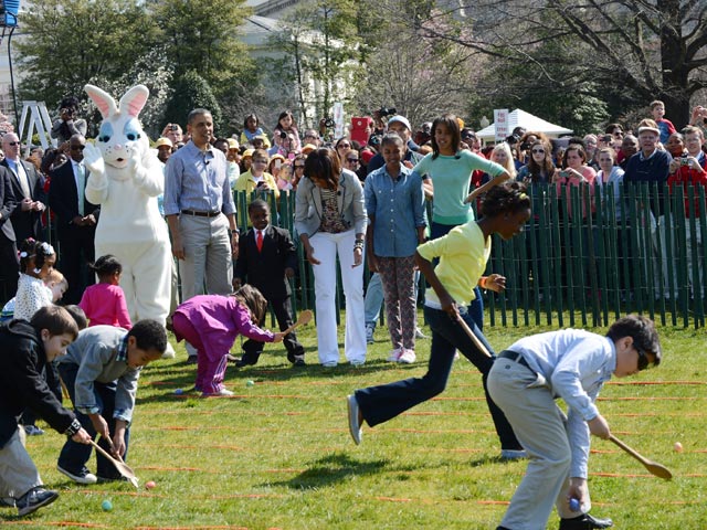 На Южной лужайке Белого дома по случаю католической Пасхи, отмечавшейся в этом году 31 марта, состоялся традиционный детский праздник с катанием пасхальных яиц, спортивными играми, чтением книг, приготовлением блюд, цирковыми номерами и музыкальными выступлениями. Барак Обама вместе со своей женой Мишель и дочерьми Малией и Сашей встретили гостей со всем радушием. "Ребята, вы молодцы, что принесли с собой отличную весеннюю погоду. Было немного прохладно утром, но сейчас все по-другому - это явно ваша заслуга", - обратился к детям глава США.