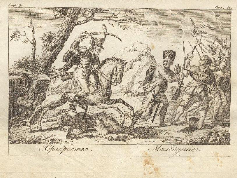 Иллюстрация к книге Ж.-Г. Масселена «Свет в малом виде, или Жизнь человеческая в противоположных отношениях», Москва, 1821 Самыми старыми книгами коллекции являются знаменитое руководство для юношества «Юности честное зерцало», изданное по указанию Петра I в 1717 году, и «Рисовальная азбука Г-на Г.М. Крауза» 1798 года. Рисовальная азбука помогала маленьким художникам научиться рисовать сначала отдельные части человека: глаз. нос, ухо, руку - а потом и человеческую фигуру в правильных пропорциях.