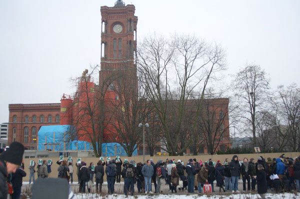 На следующий день около Красной ратуши на Александрплац и собралась демонстрация из 600 участников, с которой мы начали наш рассказ. Основные лозунги и эмоции в этот раз были направлены даже не против частного инвестора, а против мэра. Клаус Воверайт, завоевавший симпатии левых и демократов в ходе выборов в 2001 году своим заявлением, ставшим в Германии с тех пор крылатой фразой: "Я голубой (Schwule) и это хорошо!", начал резко терять своих сторонников.