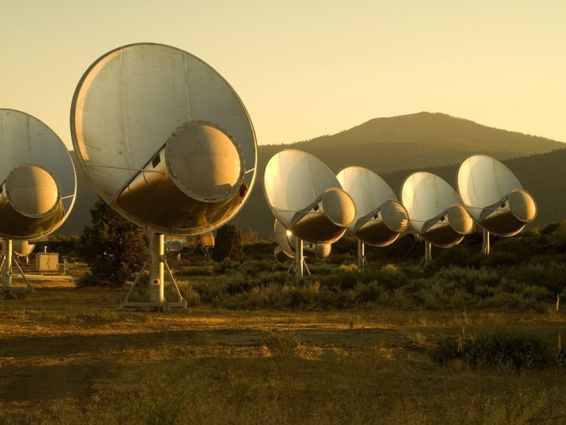 Радиотелескоп Аллена в Калифорнии (США), сканирующий космос в поисках сигналов внеземных цивилизаций. Совместный проект Института SETI и радиоастрономической лабораторией Калифорнийского университета в Беркли SETI Institute «Великое молчание Вселенной», то есть отсутствие каких-либо признаков существования в ней Разума, кроме земного, противоречит современным представлениям о мире.