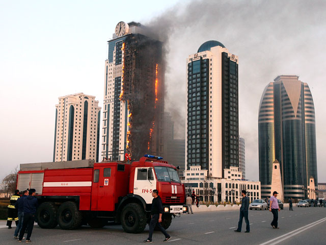 При этом с вертолетами, приобрести которые пообещал Кадыров, сложилась парадоксальная ситуация. Авиация не может быть задействована при тушении пожара в высотке из-за близкого расположения зданий, сообщил РИА "Новости" замначальника Саверо-Кавказского регионального центра МЧС РФ Александр Барсук. Тушению с вертолетов мешает также сильное задымление и темное время суток.