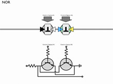 Между биологическим транскриптором и цифровым транзистором прослеживается прямая аналогия. Транзистор является одним из основных логических элементов электронных схем, это своего рода "кран", который по сигналу - наличию или отсутствию напряжения на одном из контактов - может пропускать или перекрывать ток. В электротехнике функция такого элемента называется "логический вентиль".