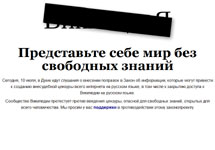10 июля русскоязычный раздел Википедии на сутки прекратил работу в знак протеста против предлагаемых поправок к закону "Об информации". "Эти поправки могут стать основой для реальной цензуры в сети Интернет - формирования списка запрещенных сайтов и IP-адресов с их последующей фильтрацией", - говорилось в обращении участников русской Википедии.