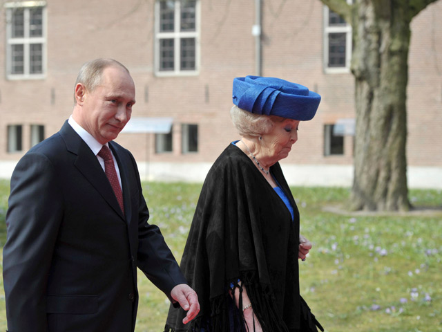 Российско-голландская встреча президента Владимира Путина и королевы Беатрикс в рамках открытия Года России в Нидерландах и Года Нидерландов в России проходит на странном фоне, где перемешались гей-парады, митинг благодарных сирийцев, похвала дирижеру и восхваление Петра Первого, благодаря которому "в России знают о существовании Голландии".