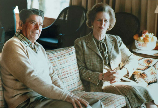 Рональд Рейган и Маргарет Тэтчер. Фото: margaretthatcher.org «Она - одно из самых ярких лиц и символов того периода мировой экономики, когда наступила новая волна, и преимущественно кейнсианская политика менялась на неолиберальную. И Тэтчер даже еще в большей степени, чем ее единомышленник Рональд Рейган, была герольдом и первопроходцем той линии, что надо ограничивать вмешательство государства в экономику, проводить приватизацию, сокращать расходы и полагаться на частную инициативу. Краткосрочные и среднесрочные результаты ее правления были достаточно впечатляющие. Она получила власть в стране, когда Великобритания находилась, мягко говоря, в печальном экономическом положении, и вывела ее на достаточно солидный, серьезный уровень. Правда, с другой стороны, уже по прошествии многих лет появились разные интерпретация того, к чему привела эта политика. Есть мнение, что современные проблемы экономики уходят корнями и в тот период. Но это, скорее, свидетельство того, что никто не может отменить цикличный ход развития мировой экономики.