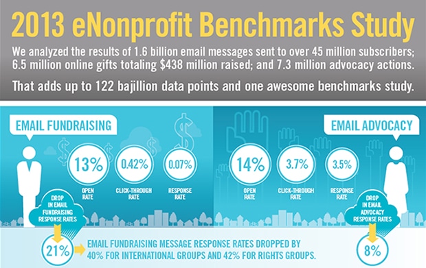 В инфографике, которая является результатом анализа 1.6 миллиардов почтовых сообщений, отправленных более чем 45 миллионам подписчиков, представлены данные о влиянии сообщений на онлайн-фандрайзинг, пропаганду и активность аудитории НКО в социальных медиа.
