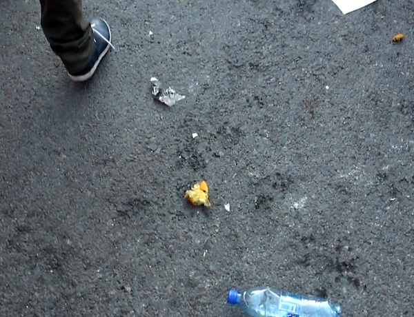 Откуда он там взялся? А черт его знает! Валялись же повсюду раздавленные мандарины и прочие продукты. В прошлом году 6 мая было тепло, мероприятие ожидалось длинное. Народ запасался провиантом.