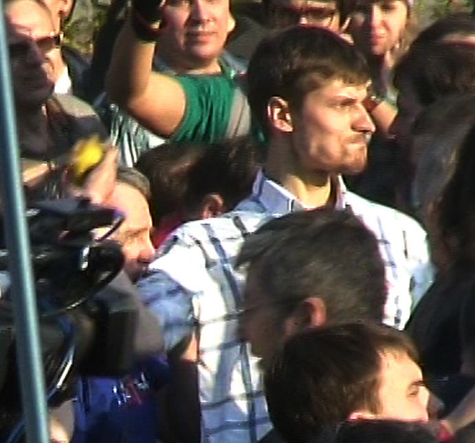 Дело в том, что на Болотной площади этот студент-отличник, будущий политолог, "очкарик", "ботаник" (как говорят друзья, чтобы показать абсурдность обвинений в насилии), "хомяк" (как говорят циники, чтобы унизить любого и каждого)... Короче, этот парень 6 мая на Болотной вел себя по-настоящему героически. Нет, он не дрался с полицией (во всяком случае, мы не нашли на видеозаписях ни намека на это). Он просто стоял, сцепившись локтями с соседями в первой шеренге. В самые кульминационные моменты, когда страсти уже вовсю разгорелись с обеих сторон и ОМОН беззастенчиво лупил дубинками по головам. Стоял в первом ряду, когда на него клином неслась орава бронированных "космонавтов". Потом они в него вцепились и выдрали из цепочки.