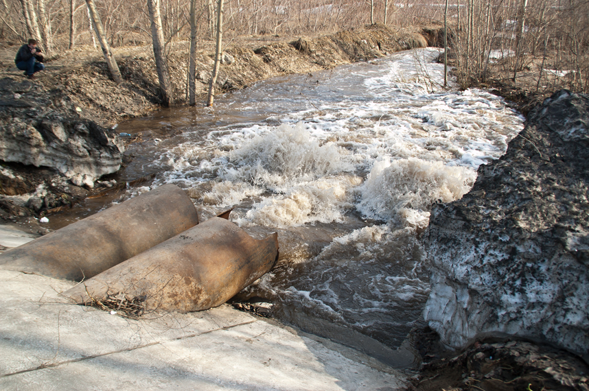 Поскольку перекресток Павловского тракта и улицы Просторной находится на месте естественного водотока (достаточно посмотреть карту), каждый год во время сильного паводка вода ищет выход. Для нее когда-то проложили две трубы, но их пропускной способности оказалось недостаточно.