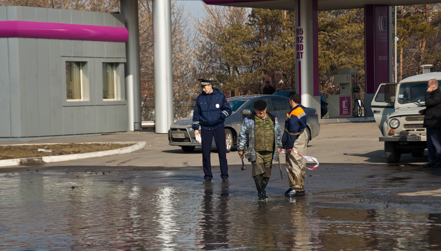 Вода вплотную подступила к расположенной неподалеку АЗС.