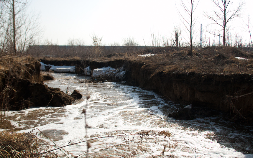 И волноваться есть о чем. Посмотрите, какое ущелье пробила вода с полей.
