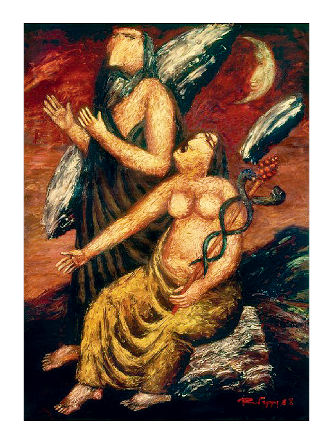 | Рауф Мамедов. Из цикла «Тайная вечеря». Фотография. 1998 г. | Александр Ройтбурд. «Бенедикция при молодом месяце». Холст, масло. 1988 г. |